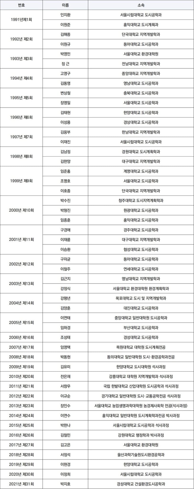 대한국토도시계획학회 박병주 장학금