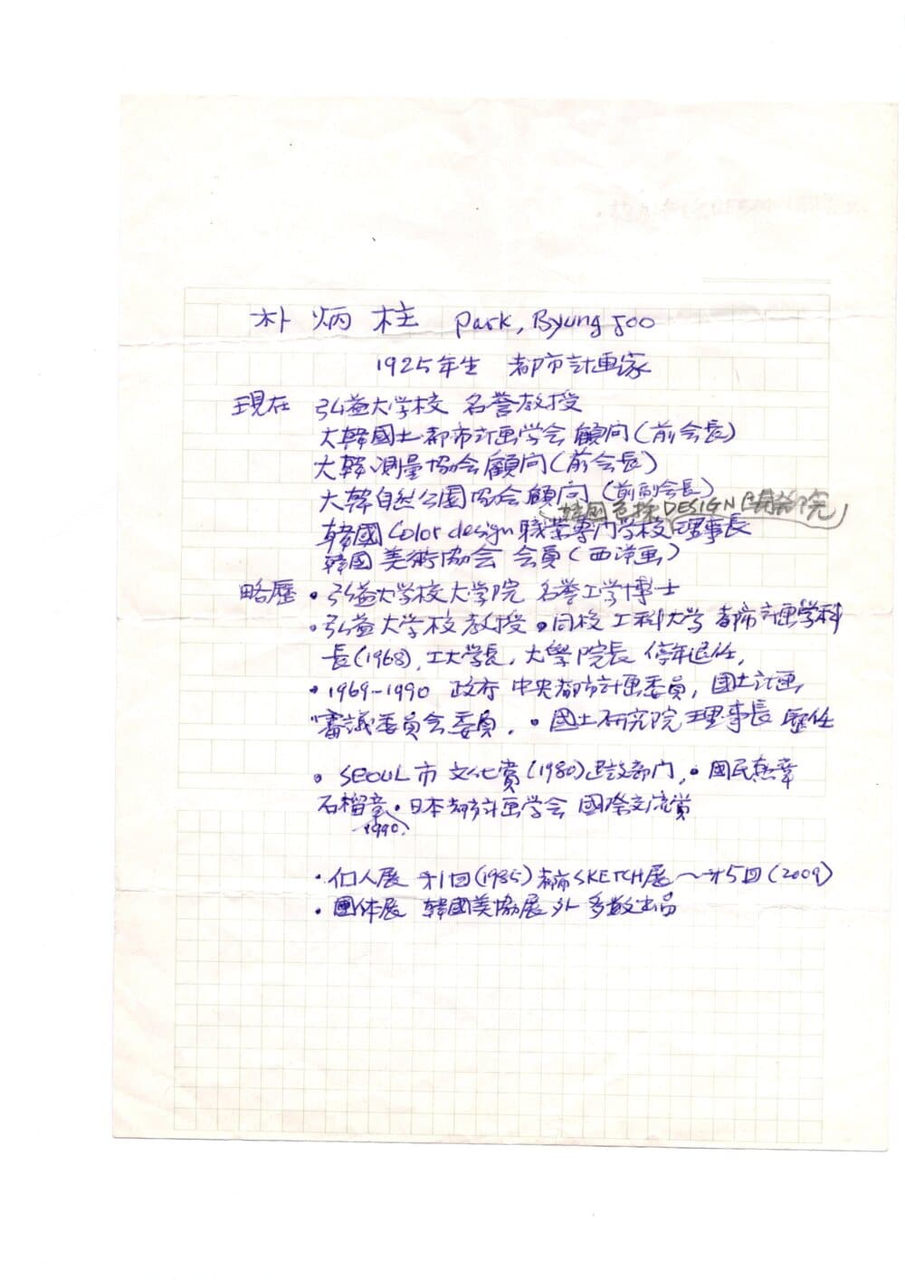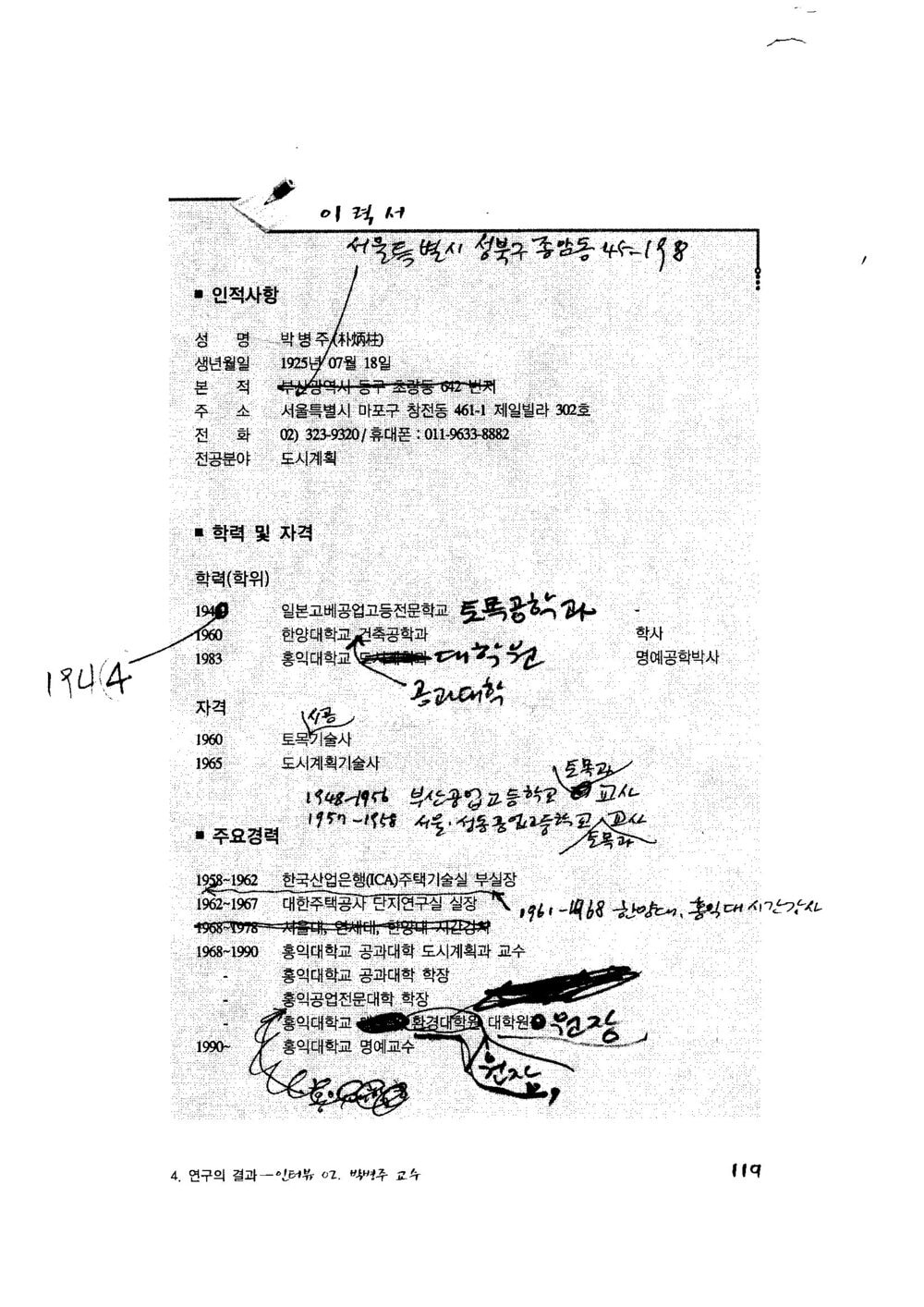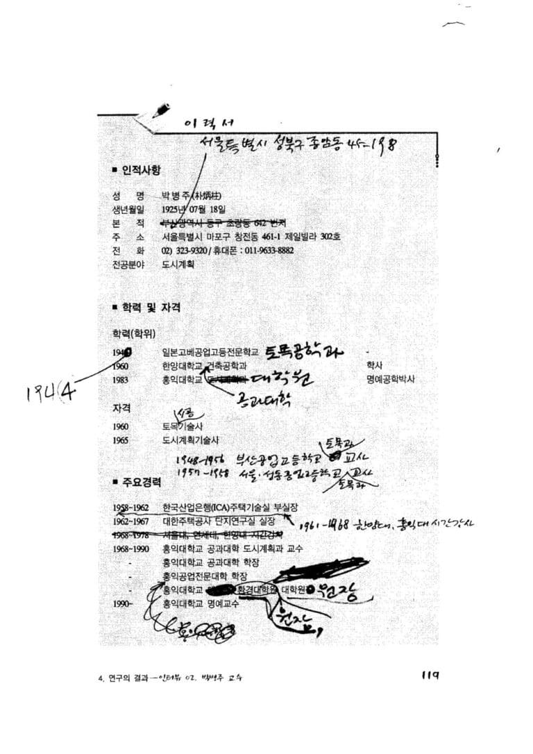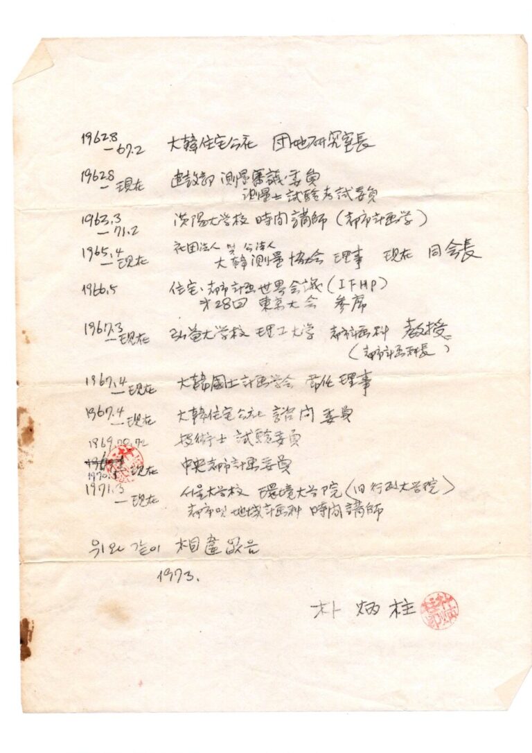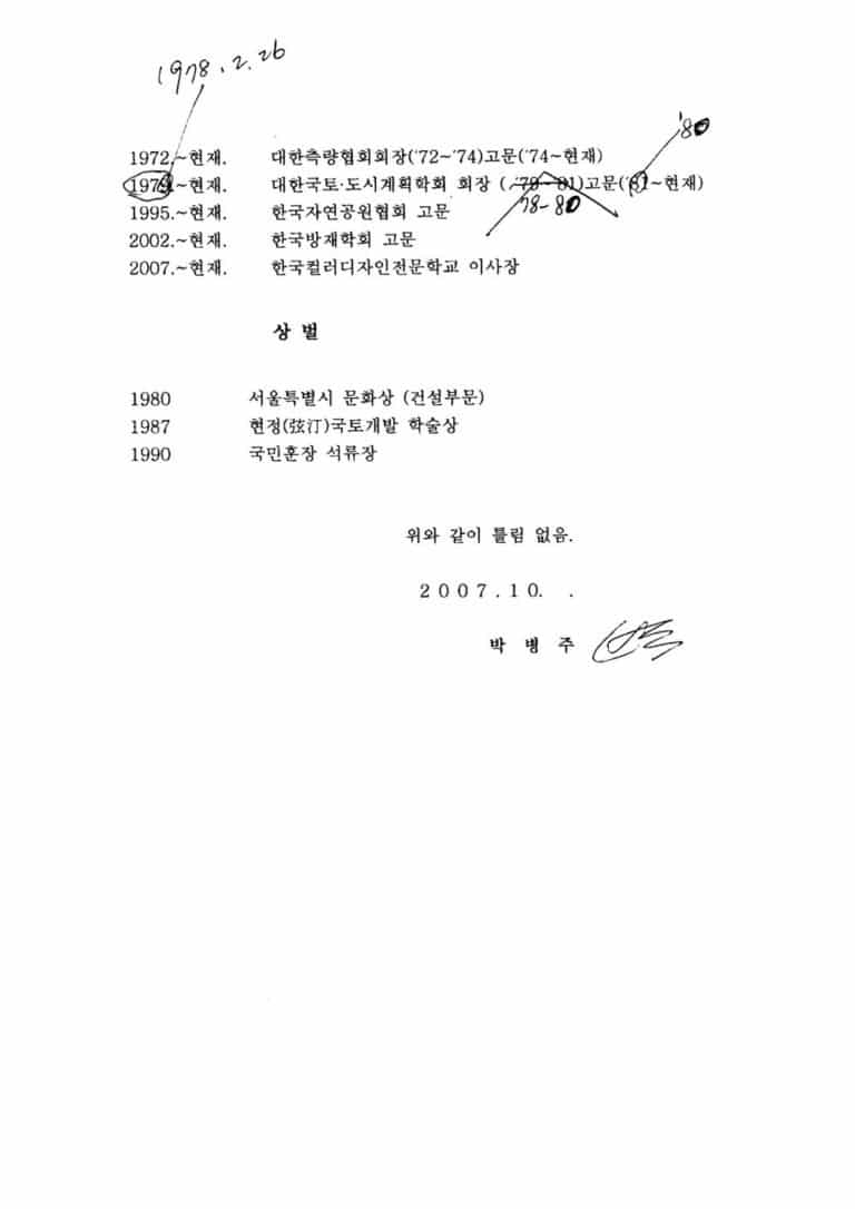 학산의 자필 이력서