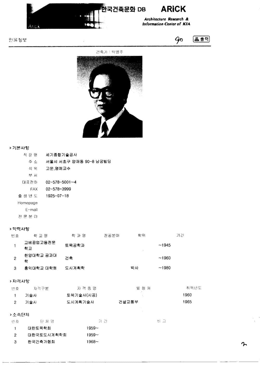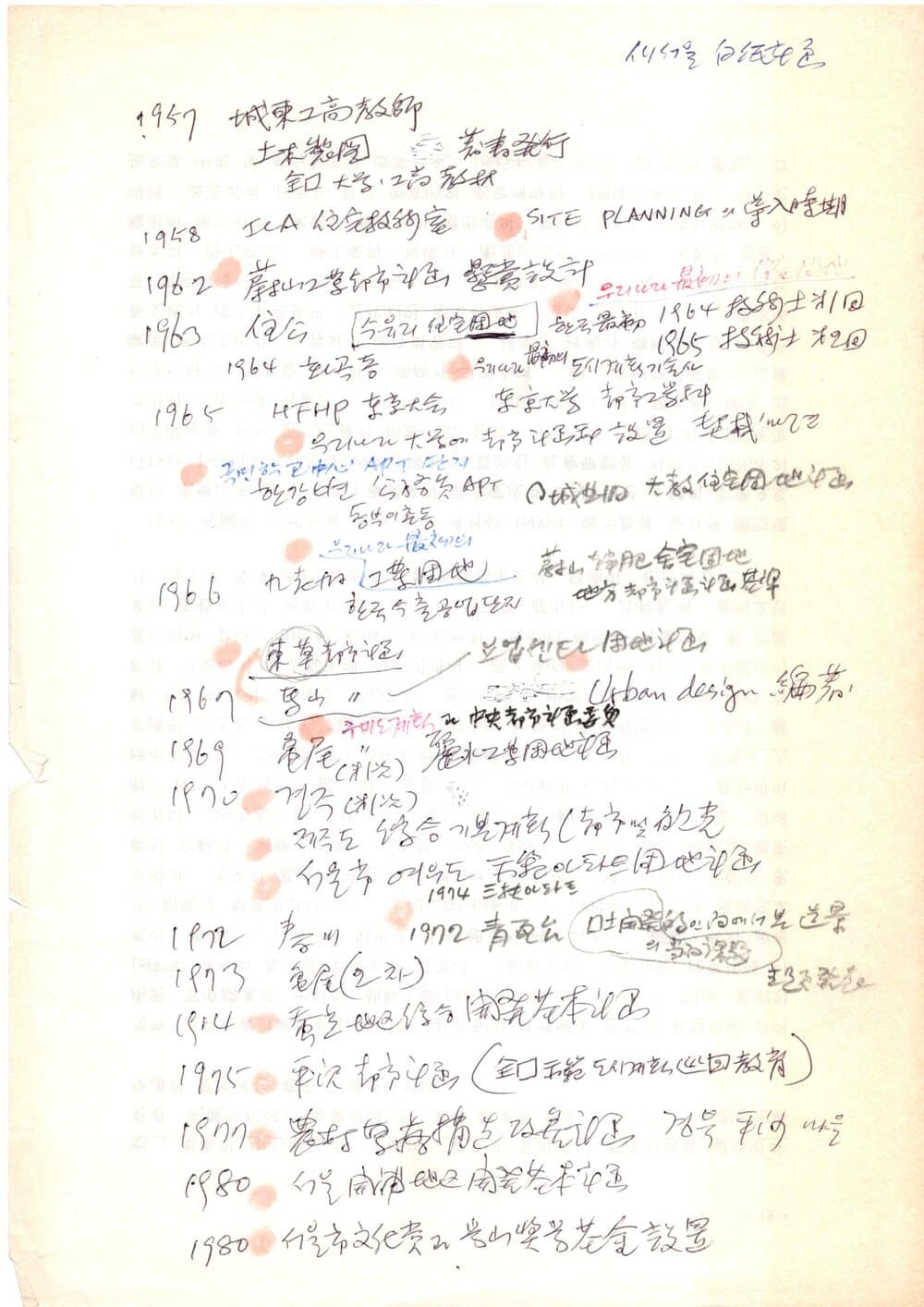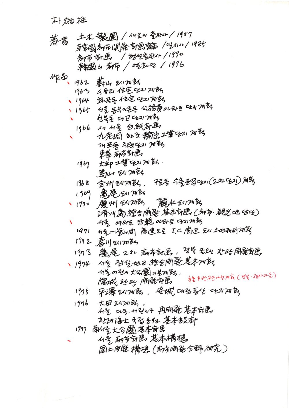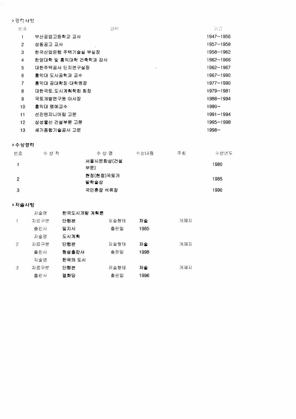 학산의 자필 이력서